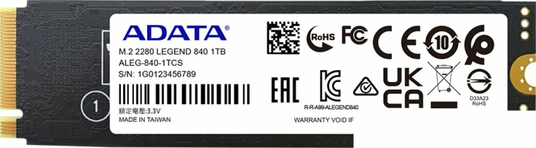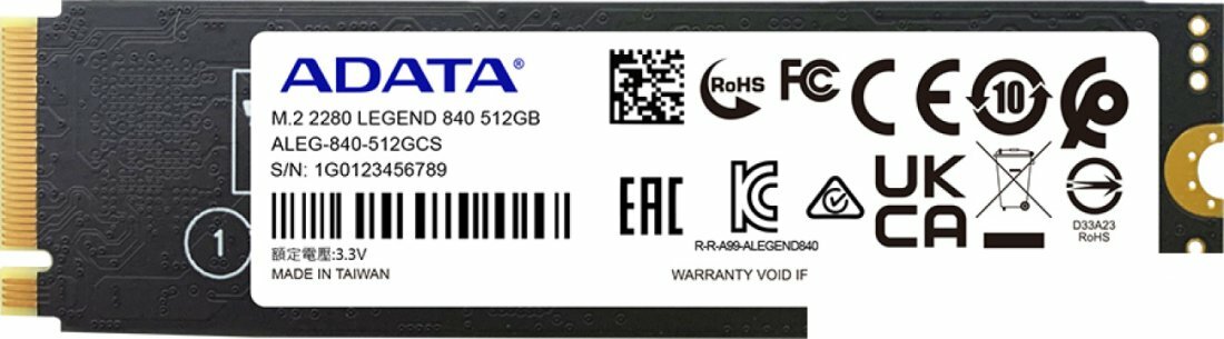 SSD накопитель A-Data Legend 840 1ТБ M.2 2280 PCI-E 4.0 x4 NVMe ALEG-840-1TCS