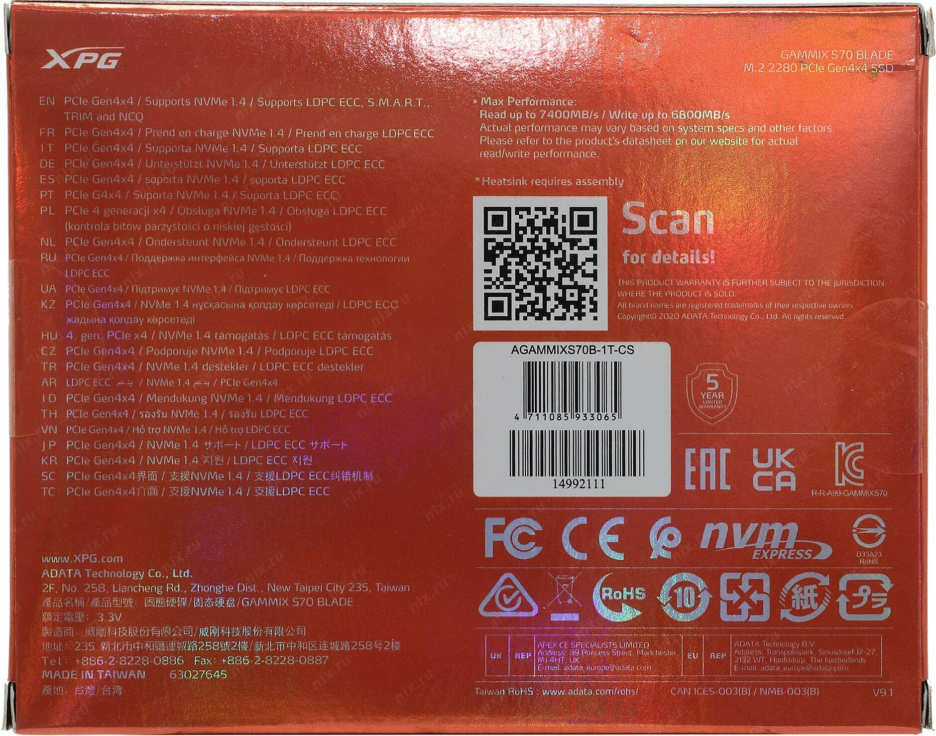 - Отличный PCIe 4.0 SSD - XPG GAMMIX S70 Blade 2TB AGAMMIXS70B-2T-CS
