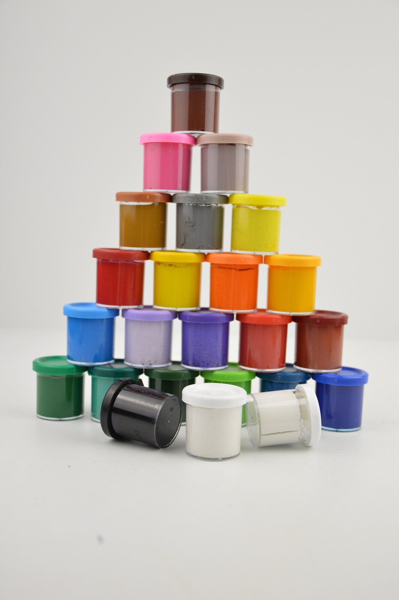 Гуашь 24 цвета в баночках по 17 мл. Краски изготовлены из тонкорастертых пигментов и наполнителей с водным раствором растительного клея и добавками целевого назначения. При высыхании гуаши развести водой.