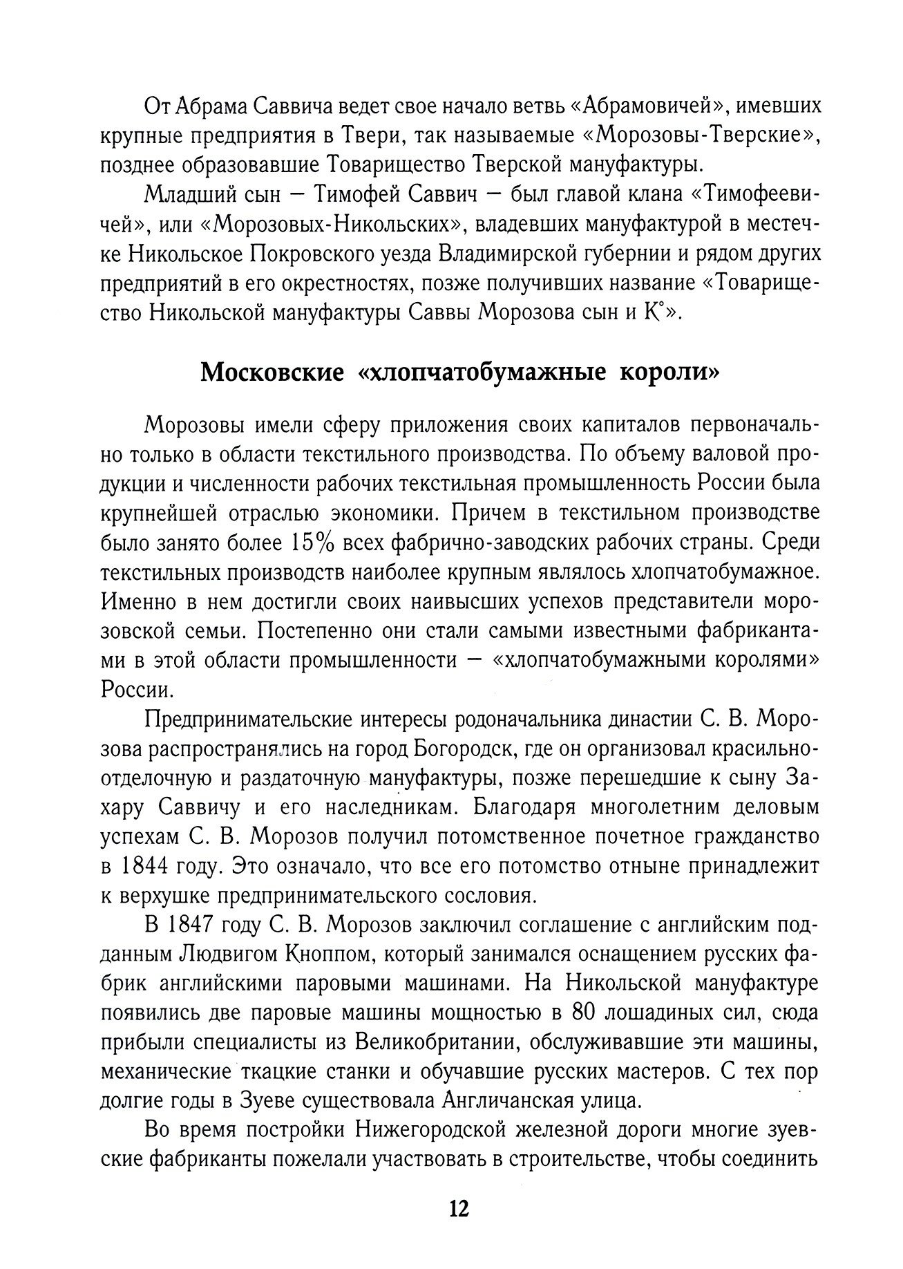 Книга посвящена знаменитой купеческой династии России, насчитывающей девять поколений. Она включает исторический очерк, определяющий роль династии Морозовых в истории Москвы и России, вклад отдельных её представителей в общественную и культурную жизнь российской столицы и русской провинции. Книга содержит подробную родословную Морозовых с учётом мужских линий.