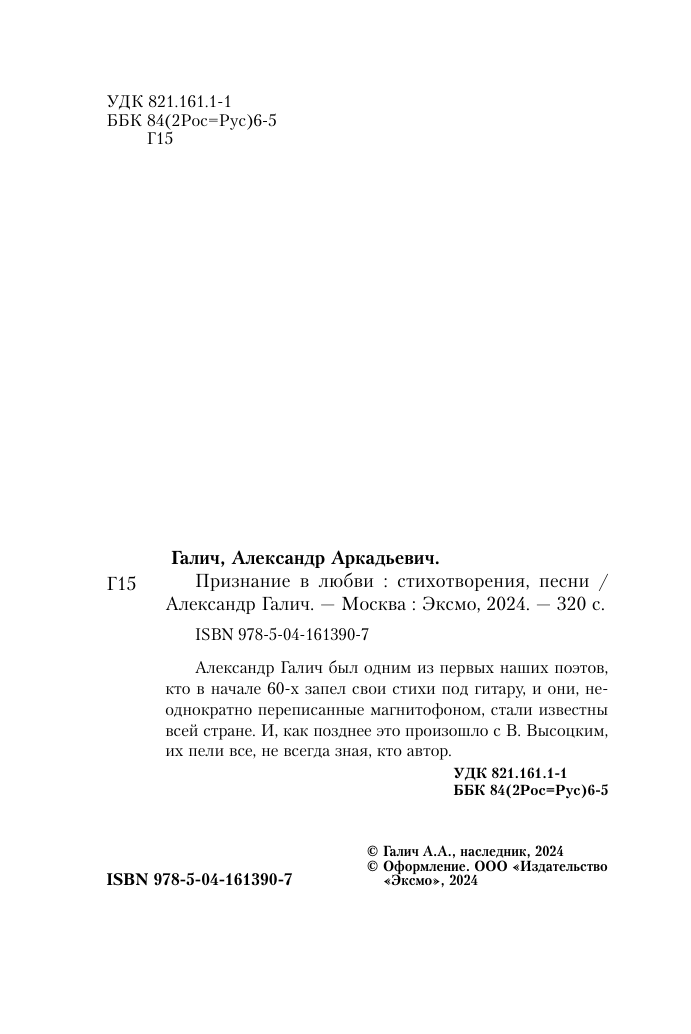 Признание в любви. Стихотворения. Песни (Галич Александр Аркадьевич); ООО "Издательство "Эксмо", 2024