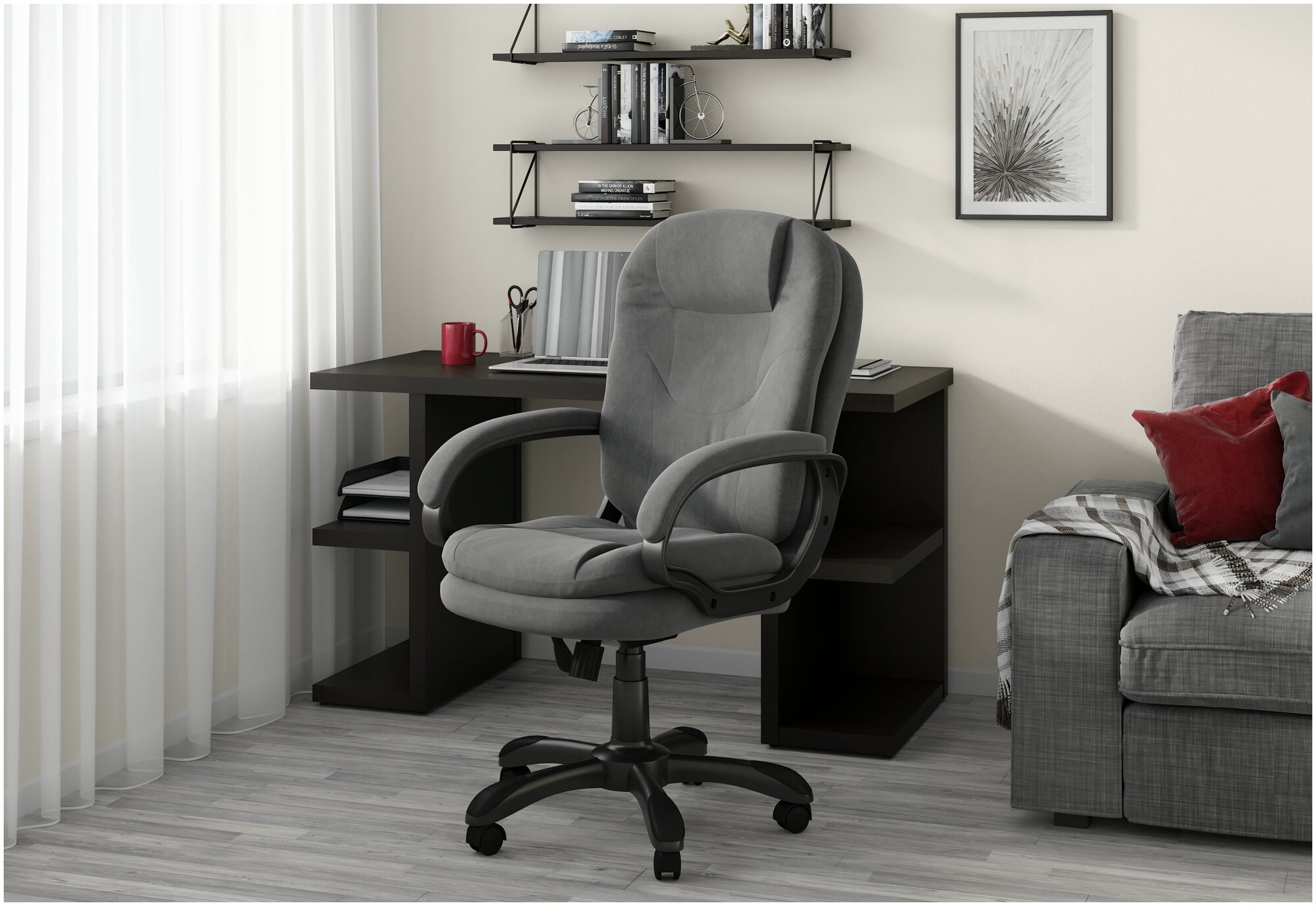 - Подлокотники: Пластиковые с мягкими накладками, обитыми тканью