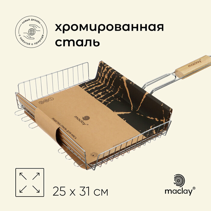 Мясо и овощи на углях — классическое и любимое угощение во время отдыха на природе. С решёткой процесс приготовления пищи становится проще. Равномерно разложенное мясо хорошо прожарится, не потеряет сок. С решётки вы легко снимите лакомство и накормите всю семью. Решётка изготовлена из хромированной стали.