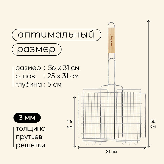 Решетка-гриль Maclay глубокая 25 x 35 x 56 см Решетка-гриль для мяса Lux глубокая 56х35х25 см