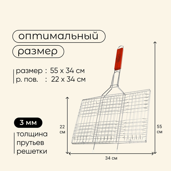 Сервис сравнения цен СкидкаГИД предлагает сравнить цены на товар «Решетка для гриля Maclay Решетка гриль для мяса Lux средняя 55х34х22 см»