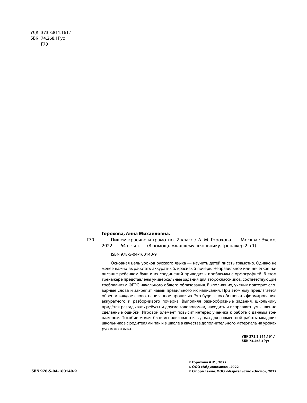 Пишем красиво и грамотно. 2 класс (Горохова Анна Михайловна); ООО "Издательство "Эксмо", 2022