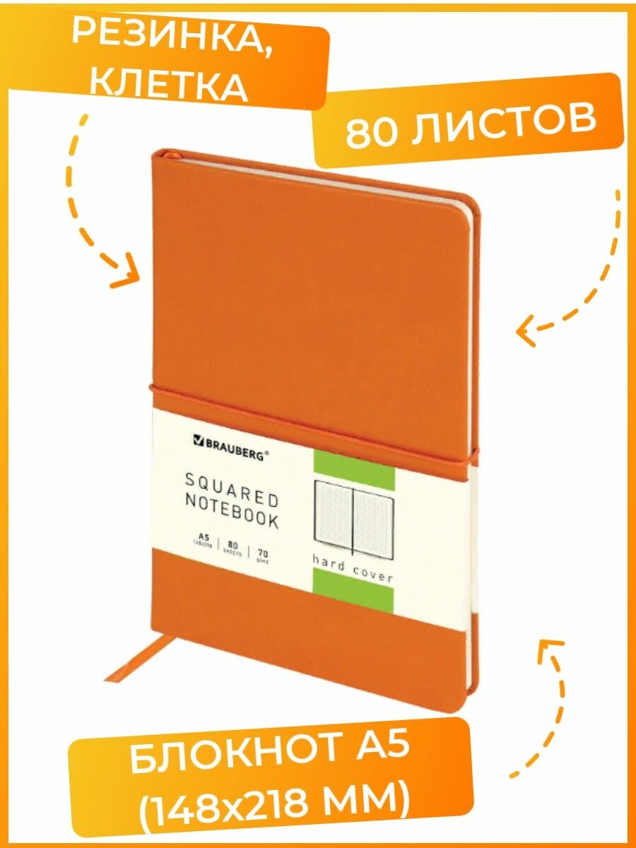 Ежедневник BRAUBERG Metropolis X недатированный A5 160стр. 80лист. в клеточку кремовые страницы оранжевый 111032