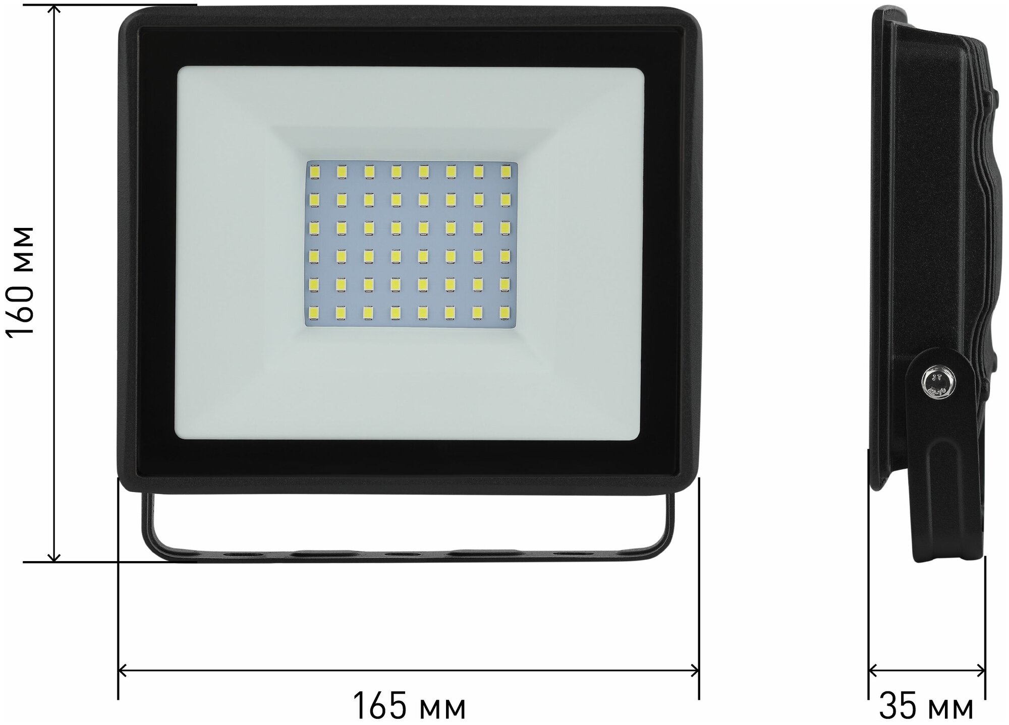 Прожектор светодиодный уличный с высоким световым потоком. Корпус -черный, изготовлен из прочного алюминия, стекло закаленное. Экономичная LED-технология сократит до 90% затрат на электроэнергию. Прожектор устойчив к механическим воздействиям, защищен от дождя и пыли, работает при широком диапазоне температур (от -40 до +45). Отличается простой и быстрой установкой: есть кронштейн специальной формы и регулировочные болты для выбора направления света. Подходит как для внутреннего, так и для наружного применения.