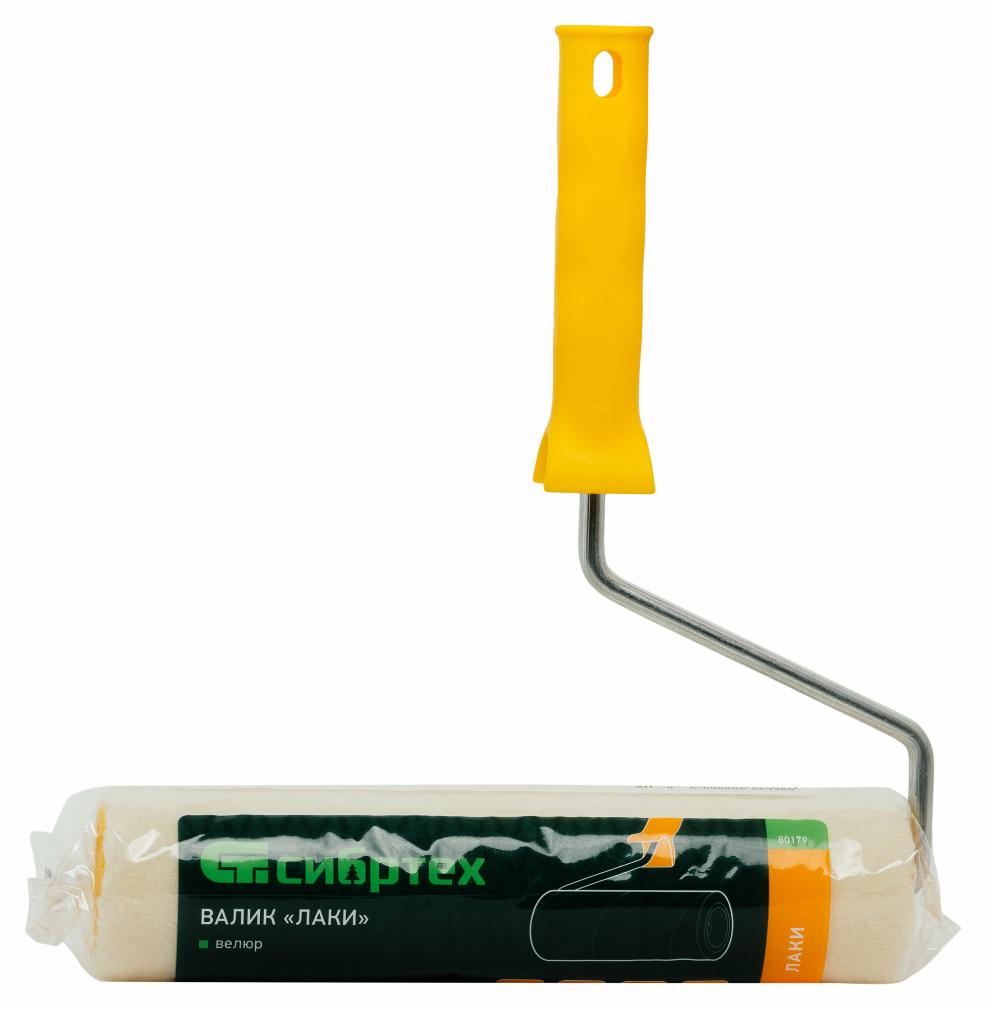 Валик Сибртех Лаки 80179 с ворсом 5 мм из велюра, ручкой 8 мм, роликом 250 х 48 мм обеспечивает нанесение ЛКМ тонким слоем, что делает его лучшим помощником для работ с лаками на гладких поверхностях. Он быстро справляется с окрашиванием больших поверхностей благодаря ширине 250 мм.