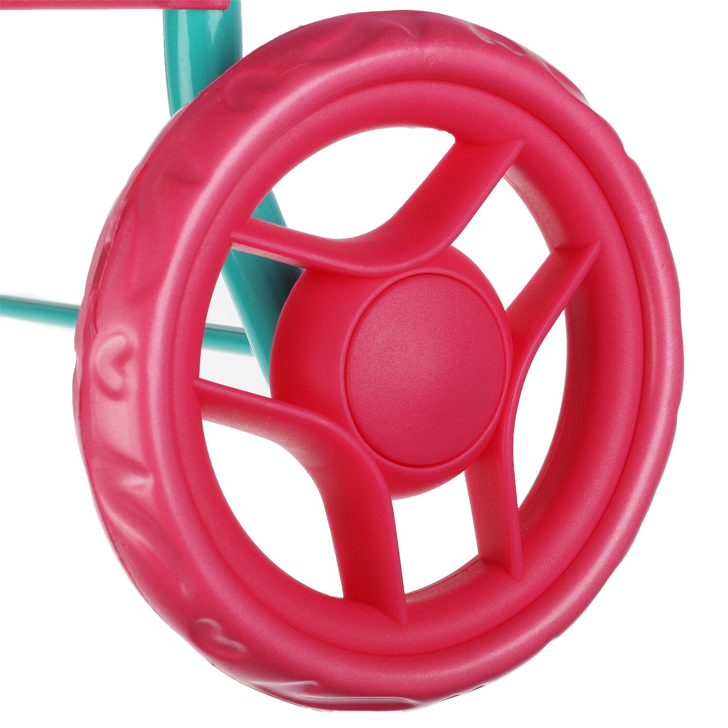 Яркая коляска с изображением персонажей любимого мультсериала непременно понравится вашей принцессе. Игрушка сделана из облегчённых материалов, чтобы ребёнок мог самостоятельно переносить её. Ручка коляски оснащена специальной рельефной накладкой, чтобы девочке было удобно её держать. Благодаря наличию у коляски корзинки, маленькая мама может взять с собой на прогулку всё самое необходимое для своего малыша, а ограничительные ремни помогут надёжно закрепить его.