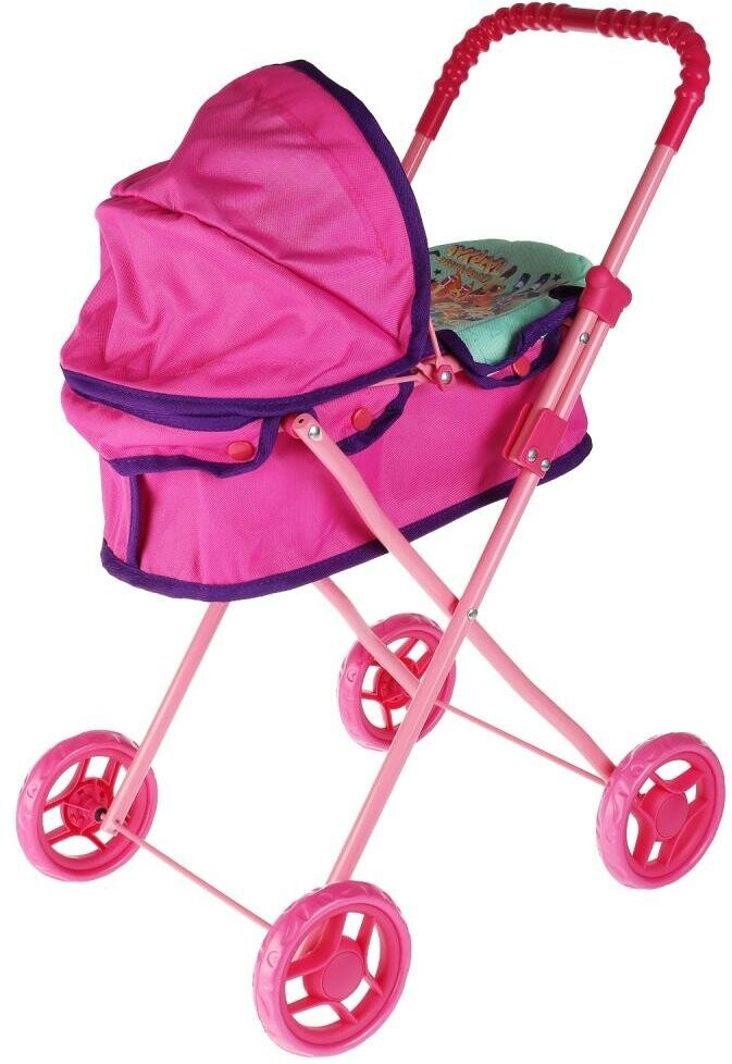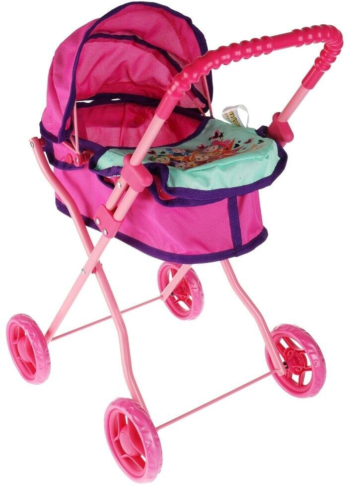 Эта красочная коляска сделана из облегчённых материалов, чтобы ребёнок мог самостоятельно переносить её. Благодаря большим мягким колёсам, коляской легко управлять. Ручка коляски оснащена специальной рельефной накладкой, чтобы девочке было удобно её держать. Нежный дизайн с более тёмными акцентами на капюшоне и оборках, а также принт с изображением героев любимого мультфильма непременно понравится малышке. Коляска поможет ребёнку разнообразить сюжетно - ролевые игры и увлекательно провести время за ними.