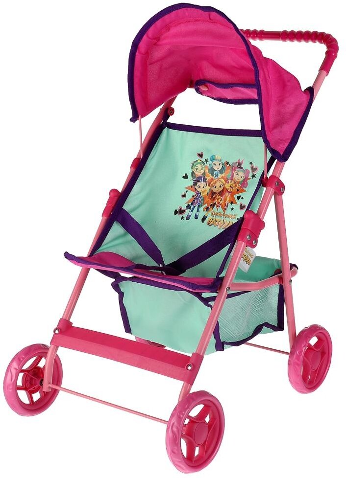 Яркая коляска с изображением персонажей любимого мультсериала непременно понравится вашей принцессе. Игрушка сделана из облегчённых материалов, чтобы ребёнок мог самостоятельно переносить её. Ручка коляски оснащена специальной рельефной накладкой, чтобы девочке было удобно её держать. Благодаря наличию у коляски корзинки, маленькая мама может взять с собой на прогулку всё самое необходимое для своего малыша, а ограничительные ремни помогут надёжно закрепить его.