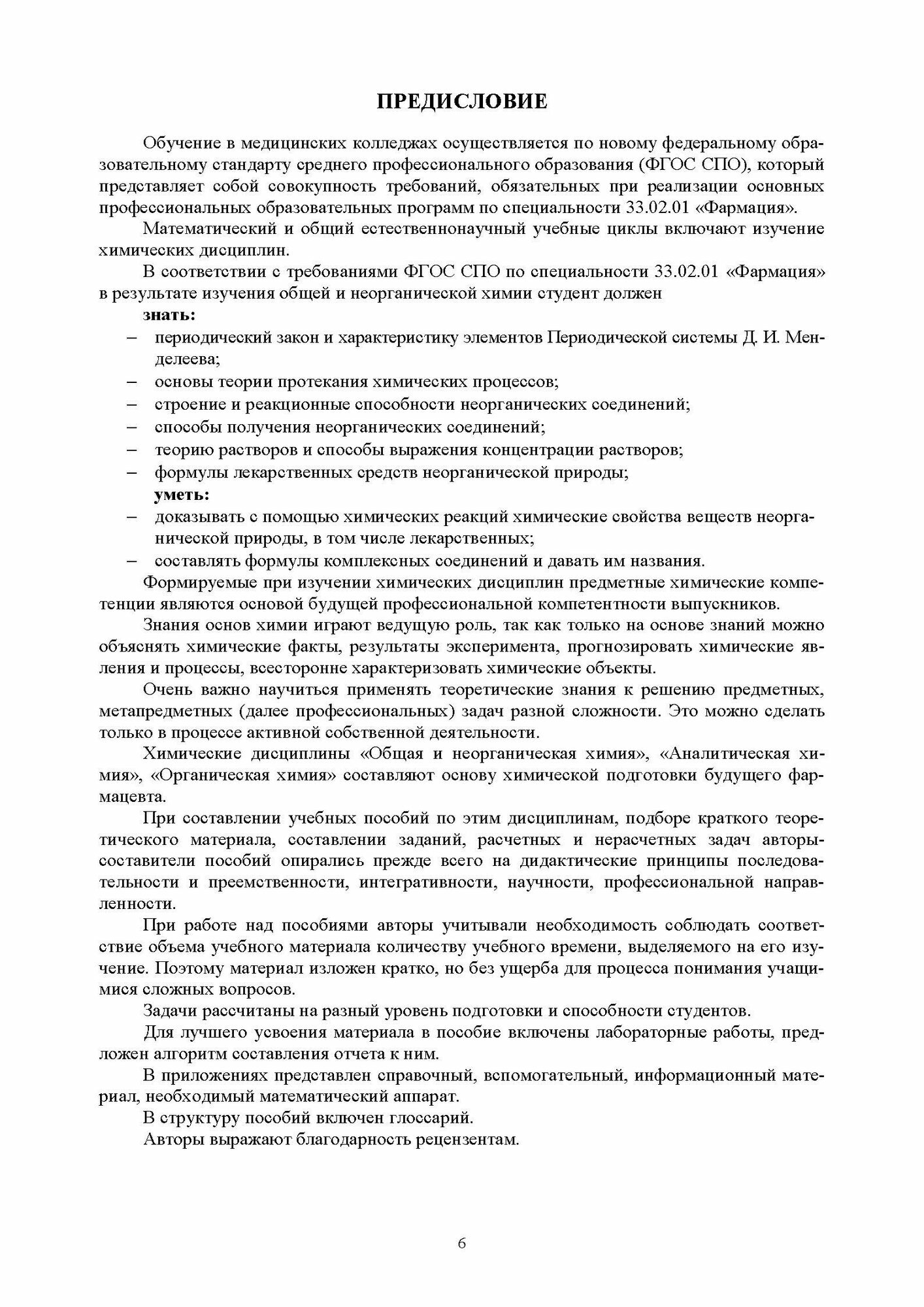 Учебное пособие посвящено фундаментальному разделу "Общая и неорганическая химия", который является базой для изучения аналитической, органической и других разделов химии, важных и необходимых для профессиональной подготовки будущих фармацевтов. Входит в состав комплекса учебно-методических пособий: "Общая и неорганическая химия", "Аналитическая химия" (авторы Т.Г.Юдина, Л.В.Ненашева), "Органическая химия" (авторы З.М.Саркисян, А.В. де Векки, И. В. Шкутина). Учебные пособия объединены общей идеей, имеют общую структуру, нацелены на формирование как общекультурных, так и профессиональных компетенций будущего фармацевта.