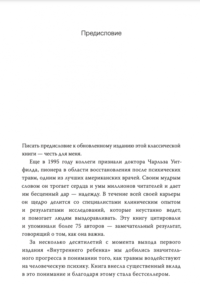 Книги по теме приходят и уходят, но эта работа остается сильным введением в диагностику и лечение последствий детских травм. Ее рекомендуют как психотерапевты, так и люди, имевшие подобный жизненный опыт.