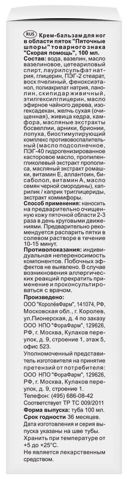 Крем-бальзам для пяток Пяточные шпоры Скорая Помощь 100мл ООО КоролевФарм (1511804)