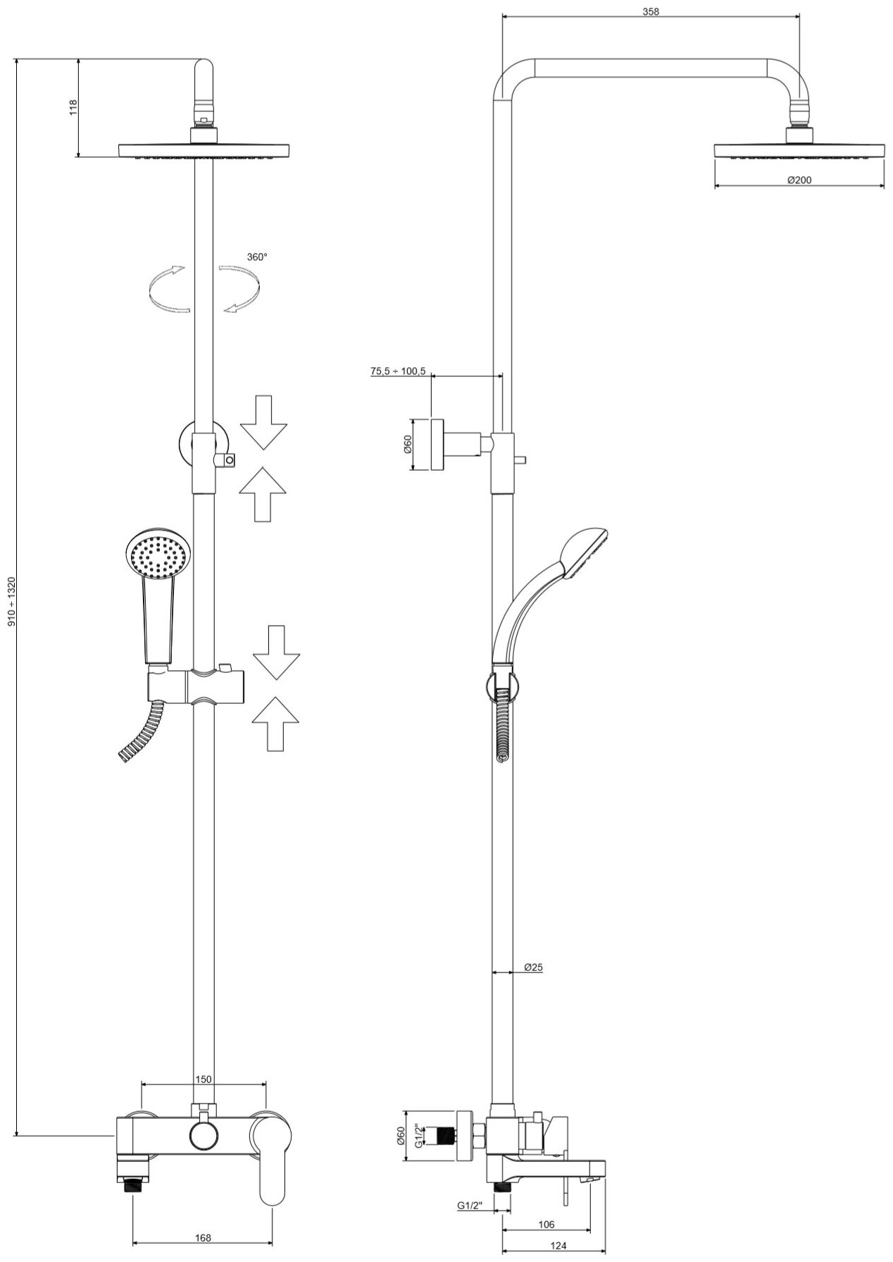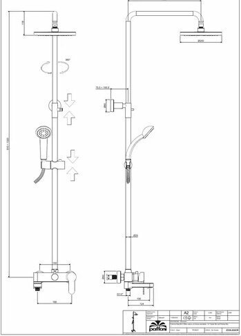 | Комплект поставки | Душевая стойка; Дивертор; Смеситель; Шланг; Верхний душ; Душевая лейка. |