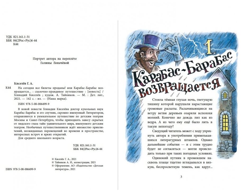 В новой повести Геннадия Киселёва доктор кукольных наук Карабас-Барабас и его спутник, скромно именуемый Литератором, отправляются в увлекательное путешествие по детским театрам Москвы и Санкт-Петербурга, чтобы приподнять завесу скрытых от людского глаза тайн удивительного мира, именуемого детским театром. Необычных путешественников ждёт множество приключений, неожиданных перемещений во времени и пространстве, интересных встреч и ярких открытий.