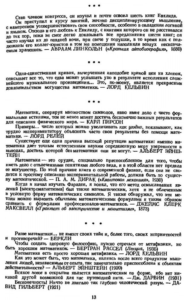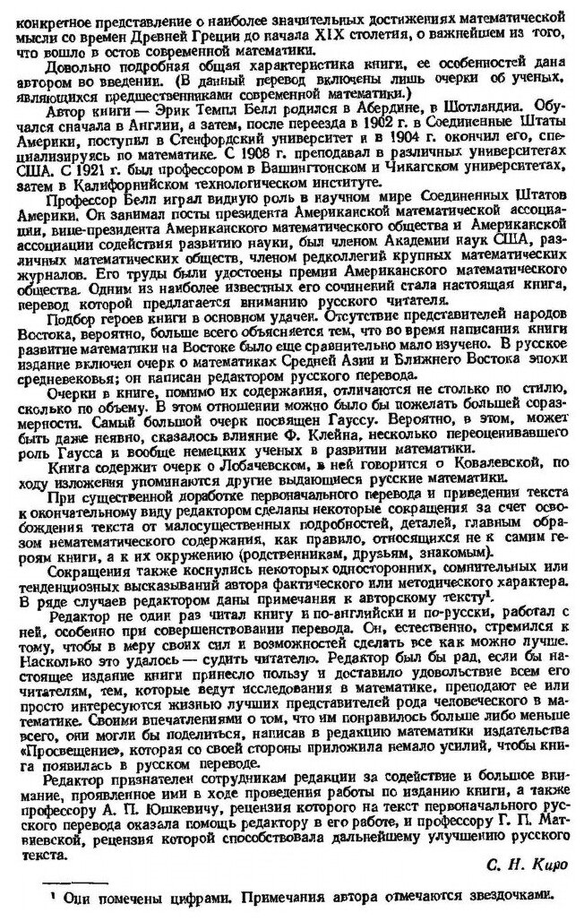 Книга состоит из оригинально задуманных и увлекательно составленных жизнеописаний великих математиков прошлого - от времени древней Греции до середины 19 века. Автор стремится нарисовать живой портрет каждого из своих героев, показать его как человека, живущего среди людей и своей деятельностью способствующего прогрессу цивилизации. Изложение, как правило, увязывается с взаимоотношениями между людьми, учеными, правителями, странами. Часто проводятся сравнения деятельности ученых, оригинальное сопоставление фактов, любопытные параллели. Книга обращена к современности. В ней описывается возникновение и развитие многих основных понятий, методов, идей, сыгравших роль в формировании современной математики.