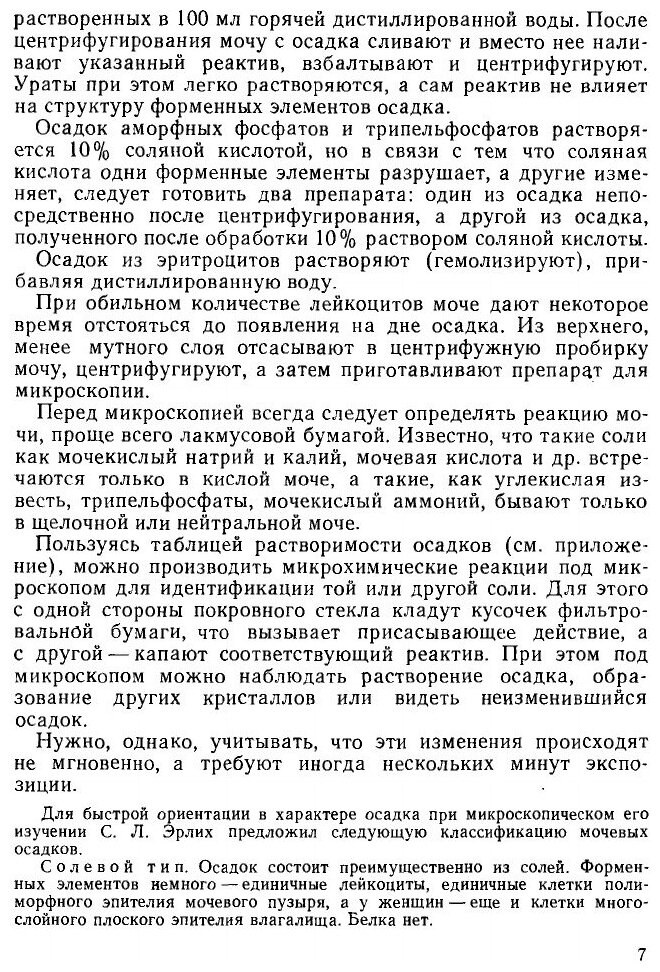 Атлас достаточно полно отражает разнообразие картин при микроскопии осадков мочи. Цель его – облегчить врачам клинических лабораторий и студентам медицинских институтов, разобраться более детально во всем полиморфизме мочевых осадков при их микроскопии. Атлас состоит из 6 разделов, в которых подробно изложена техника приготовления микроскопических препаратов, классификация мочевых осадков, представлены как часто, так и редко встречающиеся соли, показан весь полиморфизм эпителиальных клеток, различные виды цилиндров, лейкоциты и эритроциты, болезнетворные и неболезнетворные бактерии, грибы, животные паразиты. Кроме того, представлены препараты и описания осадков мочи при некоторых наиболее распространенных заболеваниях, а также дополнительные методы исследования с целью обнаружения клеток злокачественных опухолей, методы выявления скрытой пиурии, дифференциация мочевых камней и сростков.Атлас предназначен для врачей клинических лабораторий.Атлас содержит 186 цветных рисунков, 2 таблицы, библиографию из 13 названий.