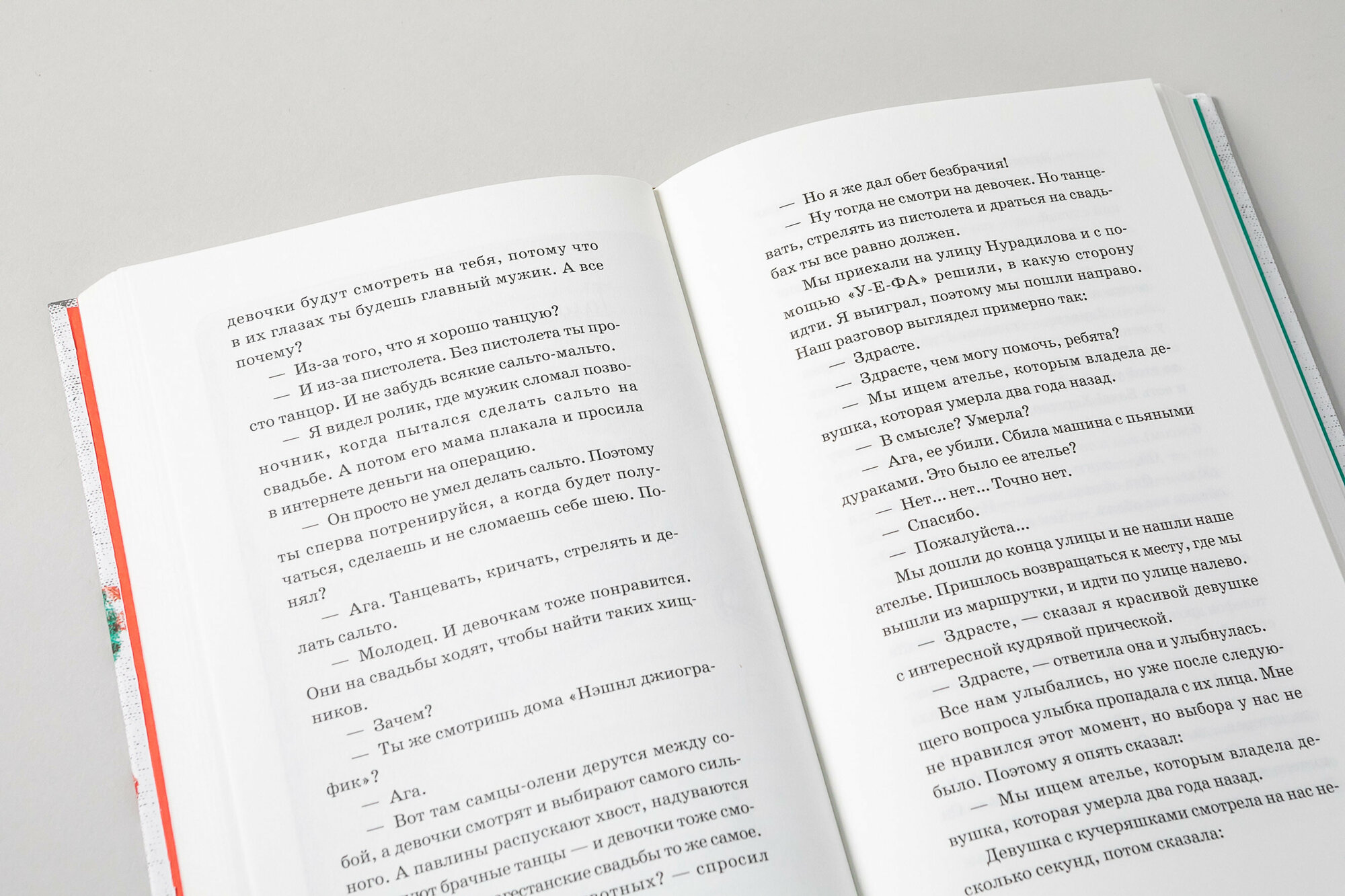 Установить«Я вышел из подъезда, размышляя о том, что недавно был человек и теперь его нет. У меня тоже была настоящая мама, а теперь ее нет. Я подумал о том, что люди слишком легко умирают и вообще никого не предупреждают. Если бы я собирался умереть, я бы точно всех предупредил. Я бы собрал всех-всех своих лучших друзей у себя в комнате. Позвал бы Расула и еще кого-нибудь — типа маму, Ахмеда, Амину — и сказал бы, что я собираюсь умереть через неделю и что если кто-нибудь собирался мне что-нибудь потом подарить, то лучше подарить сейчас, а то я уже буду мертвый и дарить будет некому».