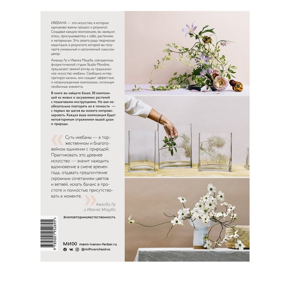 В книге вы найдете подробные пошаговые инструкции по составлению невероятных сезонных букетов и композиций. Параллельно вы многое узнаете о характерных особенностях и философии икебаны. Благодаря Studio Mondine искусство, которому уже сотни лет, стало глотком свежего воздуха и вдохновения. Пришло время и вам создавать свои уникальные, полные смысла и неповторимой естественности цветочные композиции!