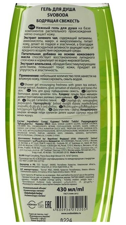 Гель для душа экстракт зеленого чая апельсина Свобода 430мл Свобода АО (751455)