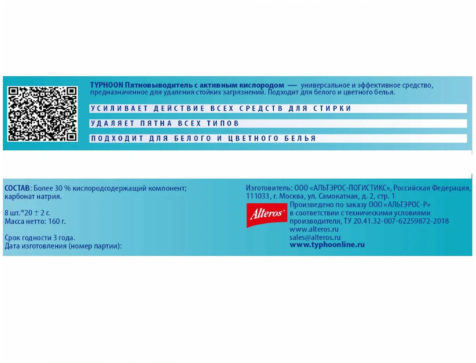 Сервис сравнения цен СкидкаГИД предлагает сравнить цены на товар «Пятновыводитель Typhoon универсальный капсулы 8шт 160г Тайфун»