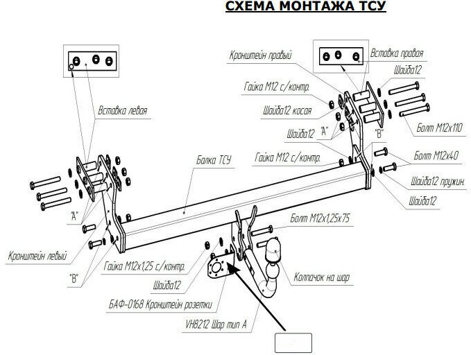 | Состав комплекта | балка ТСУ, шар, кронштейн левый, кронштейн правый, монтажный комплект |