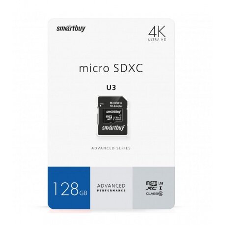 Карта памяти 32GB SmartBuy MicroSDHC Сlass 10 Advanced U3 V30 A1 (55/90 Mb/s)+ SD адаптер SB32GBSDU1A-AD