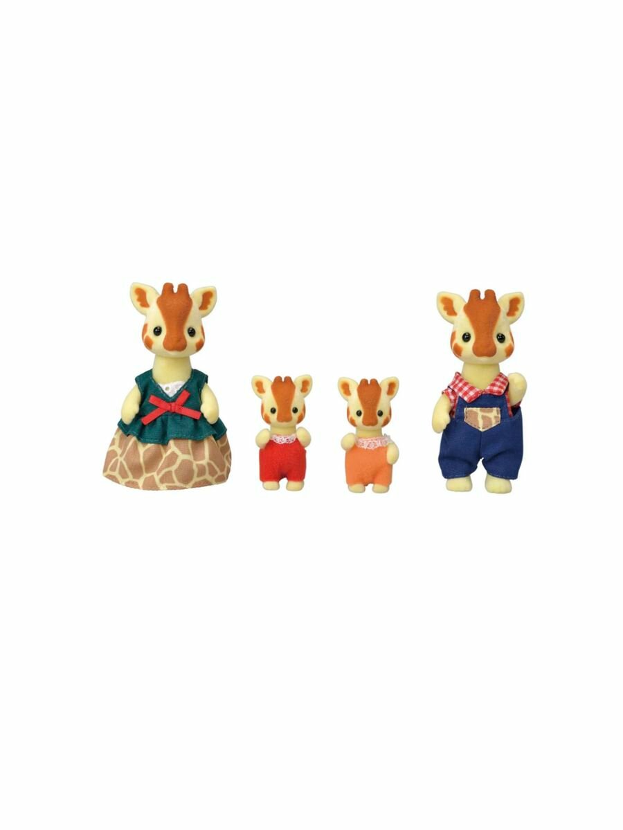 Семья жирафов Sylvanian families с длинными шеями и красивым рисунком. Семья состоит из мама, папы и двух малышей мальчика и девочки. Голова у жирафов поворачивается, а благодаря подвижным лапкам, зверюшкам можно придавать разные позы и помещать в их руки небольшие предметы. Ребенок может разыгрывать любые сюжетные сценарии, совмещая и комбинируя с другими наборами.