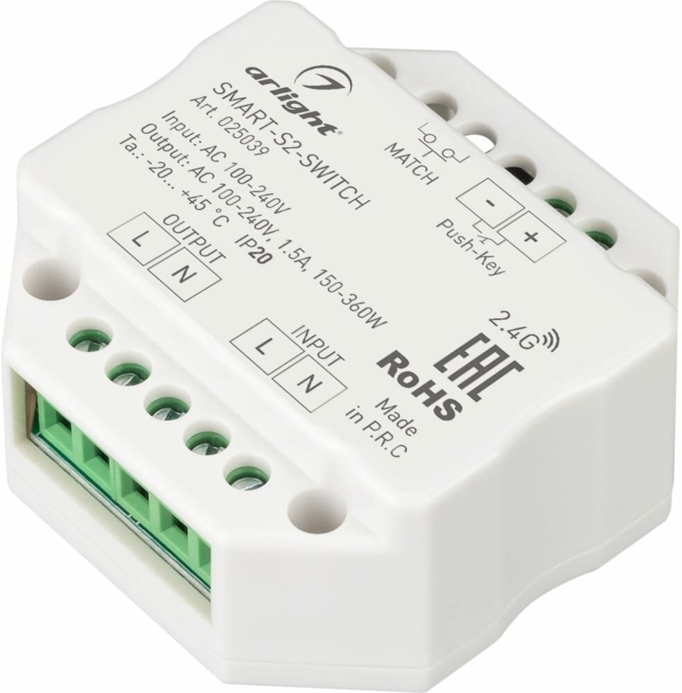025039 Arlight Контроллер-выключатель SMART-S2-SWITCH (230V 1.5A 2.4G) (IP20 Пластик 5 лет)