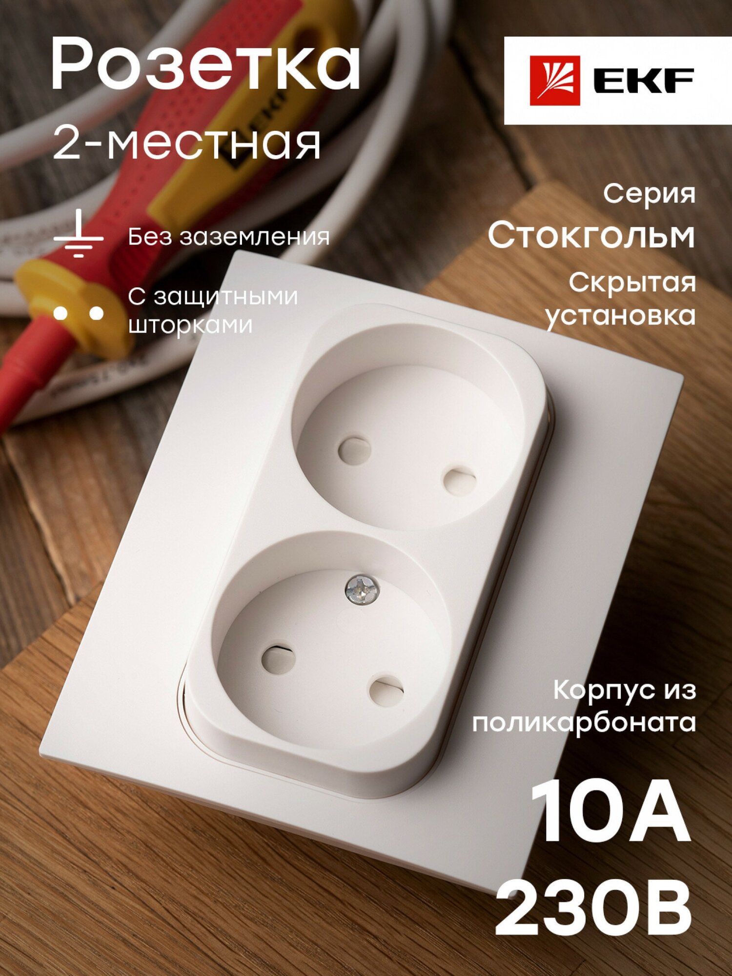 EXR10-102-10 EKF PROxima Стокгольм Розетка 2-местная б/з 10А белая с защ. штор.
