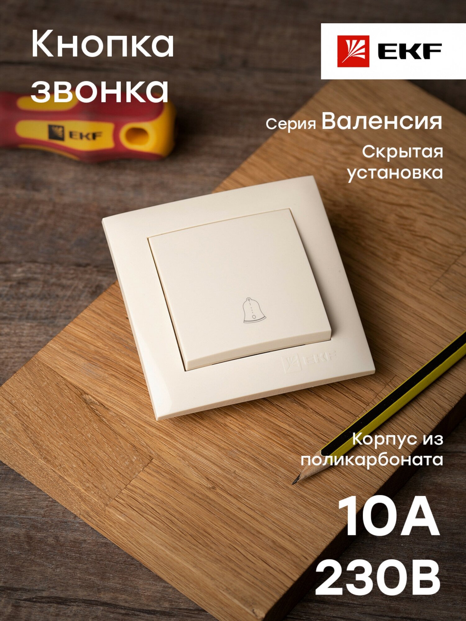 EWV10-026-20 EKF PROxima Валенсия кнопка звонка 10А кремовая