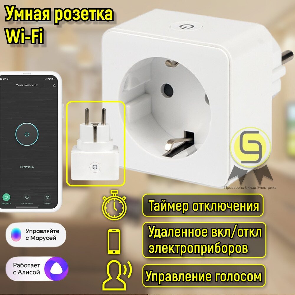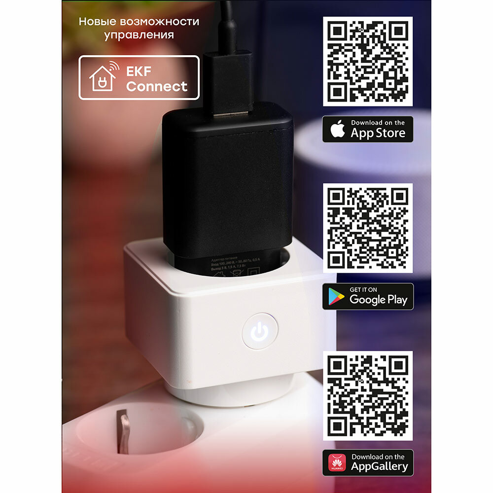 Умная розетка EKF Connect поможет сделать обычные приборы умными. При помощи приложения для Android и iOS, а также при помощи голосовых помощников Алиса от Яндекса, Маруся от VK и Салют от Сбера можно управлять светильниками, вентиляторами, обогревателями, увлажнителями и любыми другими приборами, которые начинают работать сразу же при подаче напряжения.