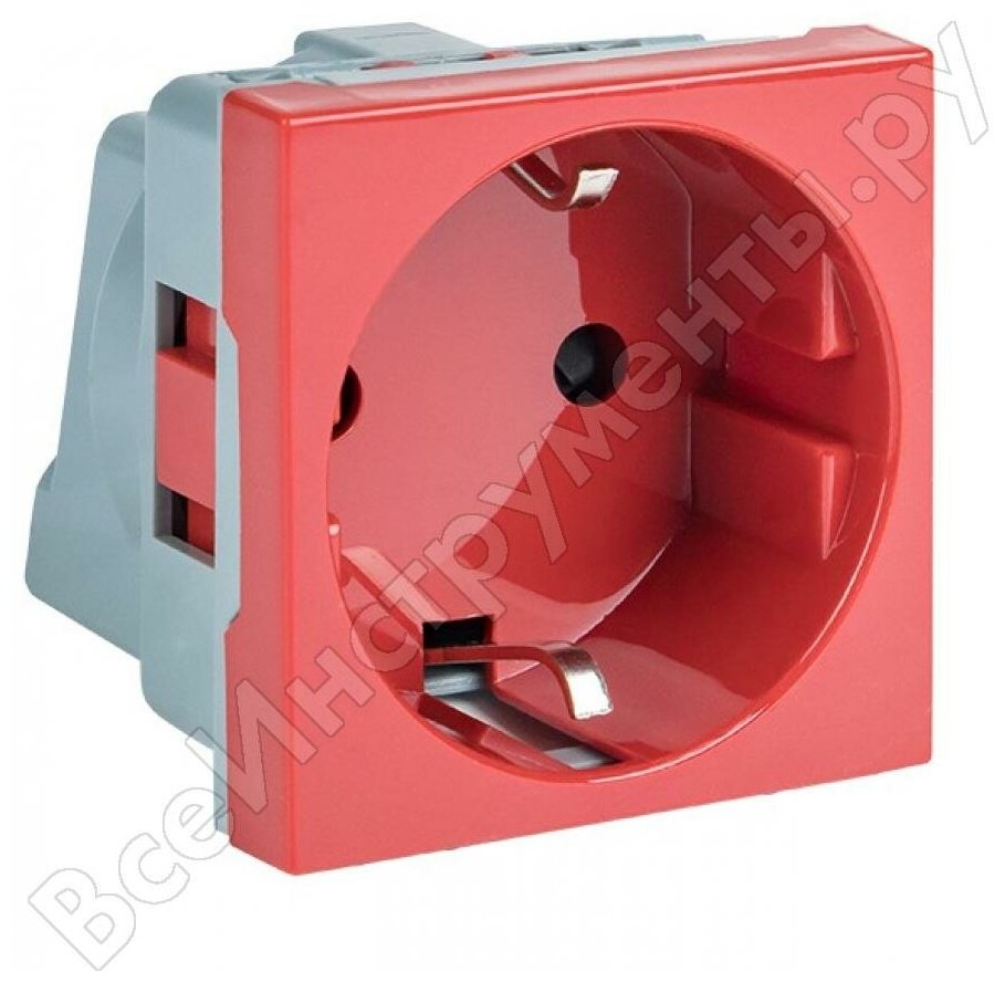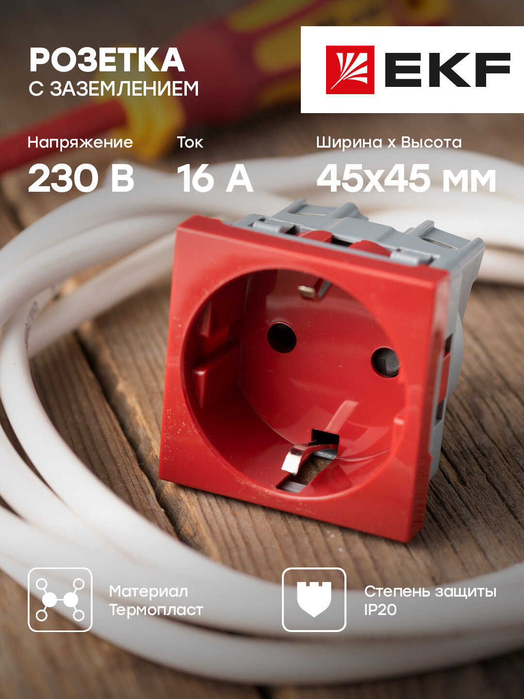E2MR16-028-70 EKF PROxima Розетка 45х45 (2 модуля) с заземлением красная прямая
