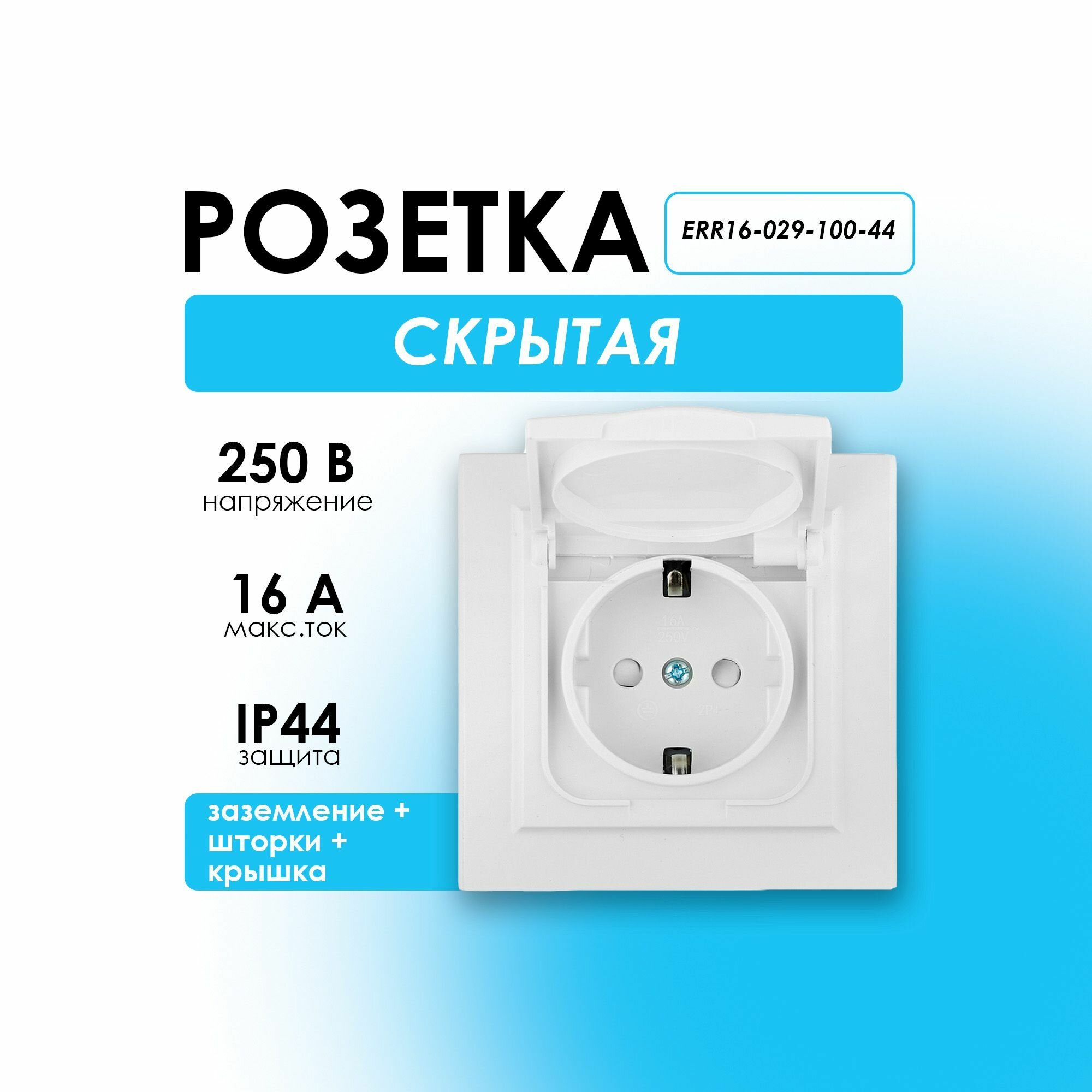 ERR16-029-100-44 EKF Basic Минск Розетка 1-местная СП с/з с крышкой 16А белая с защ. штор. IP44
