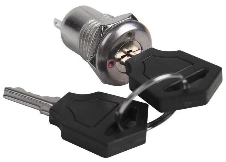 Выключатель ключ O12 250V 0.5А (2с) ON-OFF предназначен для коммутации электрических цепей переменного тока напряжением 250В. Выключатель-ключ применяются в качестве комплектующих изделий различного электрооборудования (блоках питания, электроустановках на различных производствах, автомобилях, и многих других местах). Такой переключатель имеет два положения. Для переключения в нужное положение установите ключ (поставляется в комплекте) и приложите некоторые усилия на него. Монтаж осуществляется без применения винтов на плоских панелях толщиной от 0.8мм до 3мм. Подключение контактов осуществляется с помощью пайки.