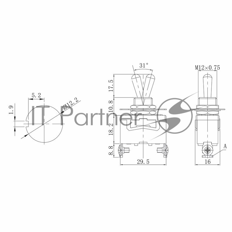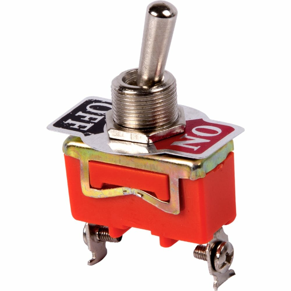 Тумблер 250V 15А (2c) ON-OFF однополюсный (KN-101) предназначен для коммутации электрических цепей переменного тока напряжением до 250В. Такая разновидность переключателей применяется на лицевых панелях в качестве комплектующих изделий различного электрооборудования (в измерительных приборах, блоках питания, электроустановках на различных производствах, легковых и грузовых автомобилях, поездах и многих других местах). Отличительной особенностью тумблера является перекидной переключатель, принцип действия которого основан на его перемещении в одну из позиций. Для переключения в нужное положение требуется приложить некоторые усилия. Монтаж осуществляется без применения винтов на плоских панелях толщиной от 0.8мм до 4мм. Подключение контактов осуществляется с помощью винтов.Основные характеристики:Номинальное напряжение: 250В;Номинальный ток: 15А (250VAC);Тип переключения: ON-OFF;Количество контактных групп: 1;Количество контактов в контактной группе: 2;Фиксация положений: да;Индикатор коммутационных п