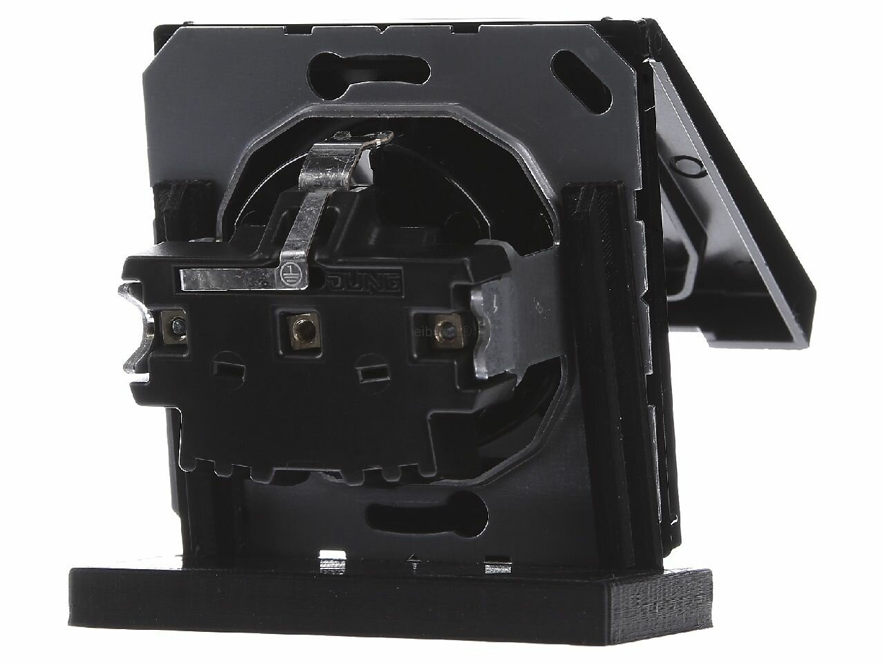 LS1520KLSW JUNG LS 990 Черная Розетка с/з с крышкой безвинт. зажим