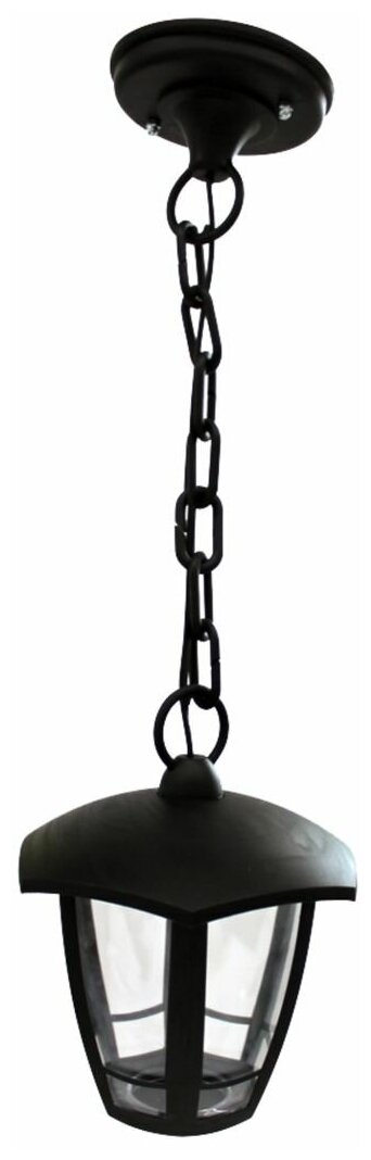 Светодиодный садово-парковый светильник с артикулом 11-197 выполнен в классическом стиле, который является универсальным. Добавит шарм в любую обстановку. Корпус изготовлен из пластика, а рассеиватель выполнен из поликарбоната. Материалы устойчивы к механическим повреждениям, а также воздействию температуры и солнечного света. Рассеиватель прозрачный, и благодаря этому потери от источника свечения минимальны. Корпус имеет классический черный цвет, который легко впишется в любую обстановку. Изделие предназначено для подвешивания и в своем комплекте уже имеет основание с цепью. Источником свечения в данном светильнике выступает светодиодная матрица с мощностью потребления 8 Вт. Она излучает световой поток равный 720 Лм с цветовой температурой 6500 К, что соответствует холодному белому цвету свечения. Светильник работает от сети 220 Вольт и не требует дополнительных устройств при подключении.