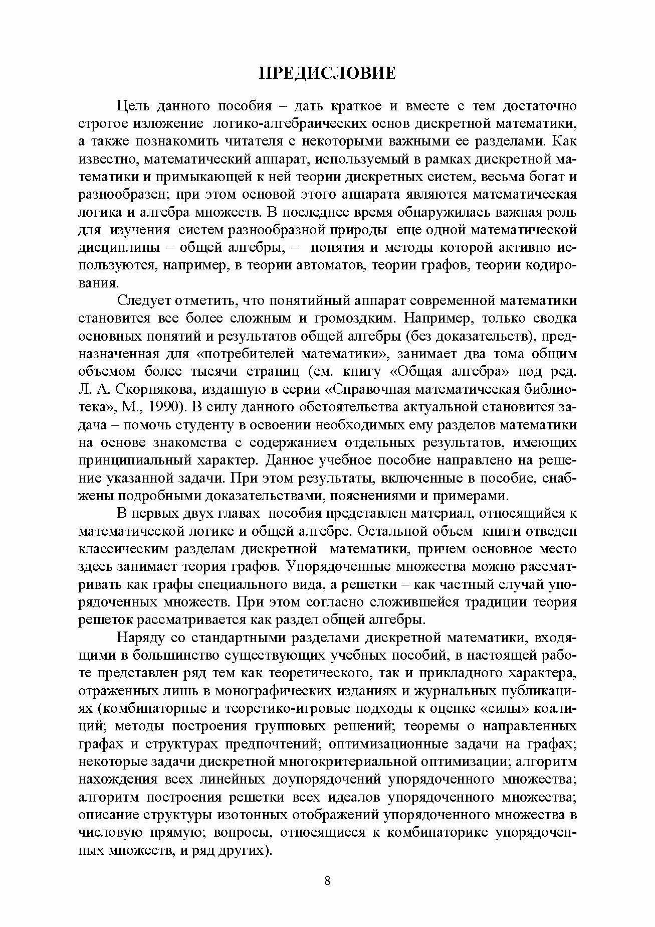 Учебное пособие посвящено логико-алгебраическим основам дискретной математики. Содержит краткое и вместе с тем доступное для начинающих изложение элементов математической логики, основных алгебраических структур, важнейших понятий комбинаторики, теории графов, упорядоченных множеств и решеток.