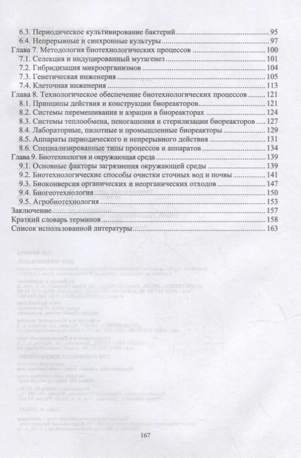 Основная цель учебного пособия — дать представление об объектах биотехнологии — клетке, ее органеллах, нуклеиновых кислотах и микроорганизмах, участвующих в биотехнологических процессах. Рассмотрены узловые участки метаболизма и принципы его регуляции. Показано, как происходит биосинтез метаболитов у прокариот и эукариот. Обсуждаются вопросы роста, размножения и культивирования микроорганизмов. Даны основы генетики микроорганизмов, приведены методы и элементы клеточной и генной инженерии. Частично затронуто техническое обеспечение биотехнологического процесса с описанием принципов действия и конструкции различных типов биореакторов. Также обсуждается вопрос участия биотехнологии в защите окружающей среды.