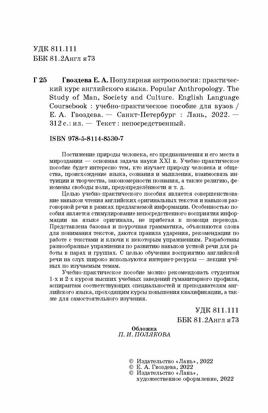Популярная антропология. Практический курс английского языка (Екатерина Александровна Гвоздева); Лань, 2022