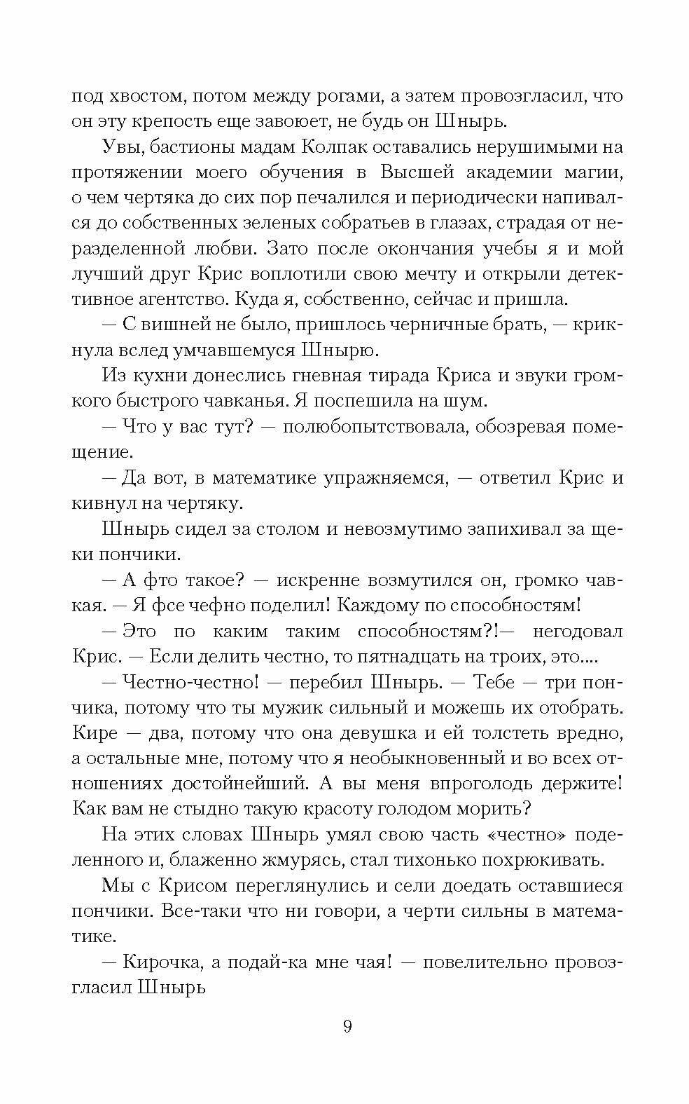 От себя скажу, что автор для меня новый, но знакомство явно удалось. Легкий слог, ненавязчивый юмор, чудесные пикировки главных героев, чертяка - обаяшка и вечер проведенный за чтением доставит вам массу удовольствия. К тому же автор пишет новую историю из жизни детективов из агенства "Шнырь и Ко", так что приключения продолжаются...