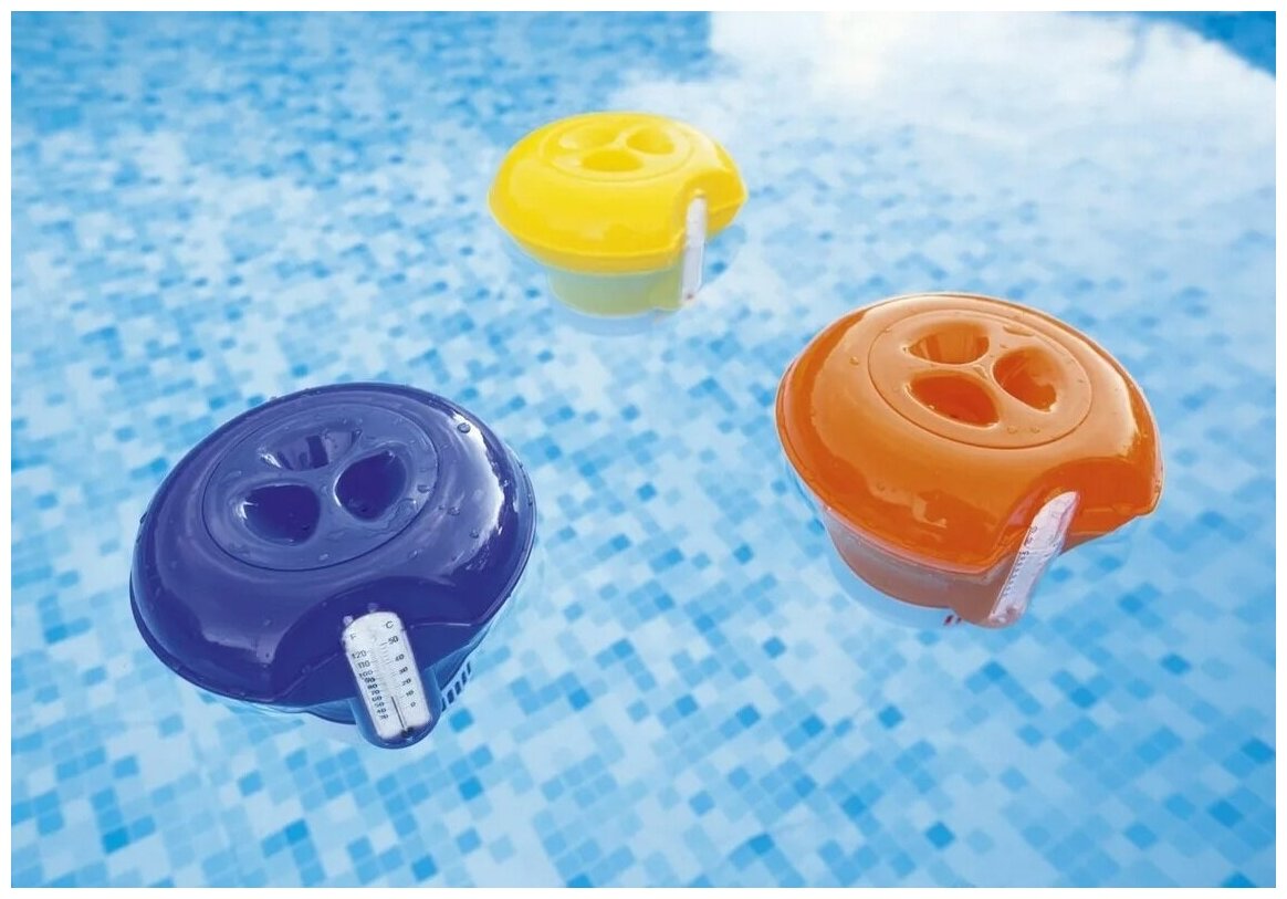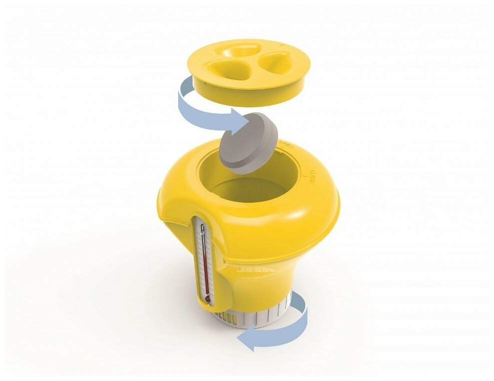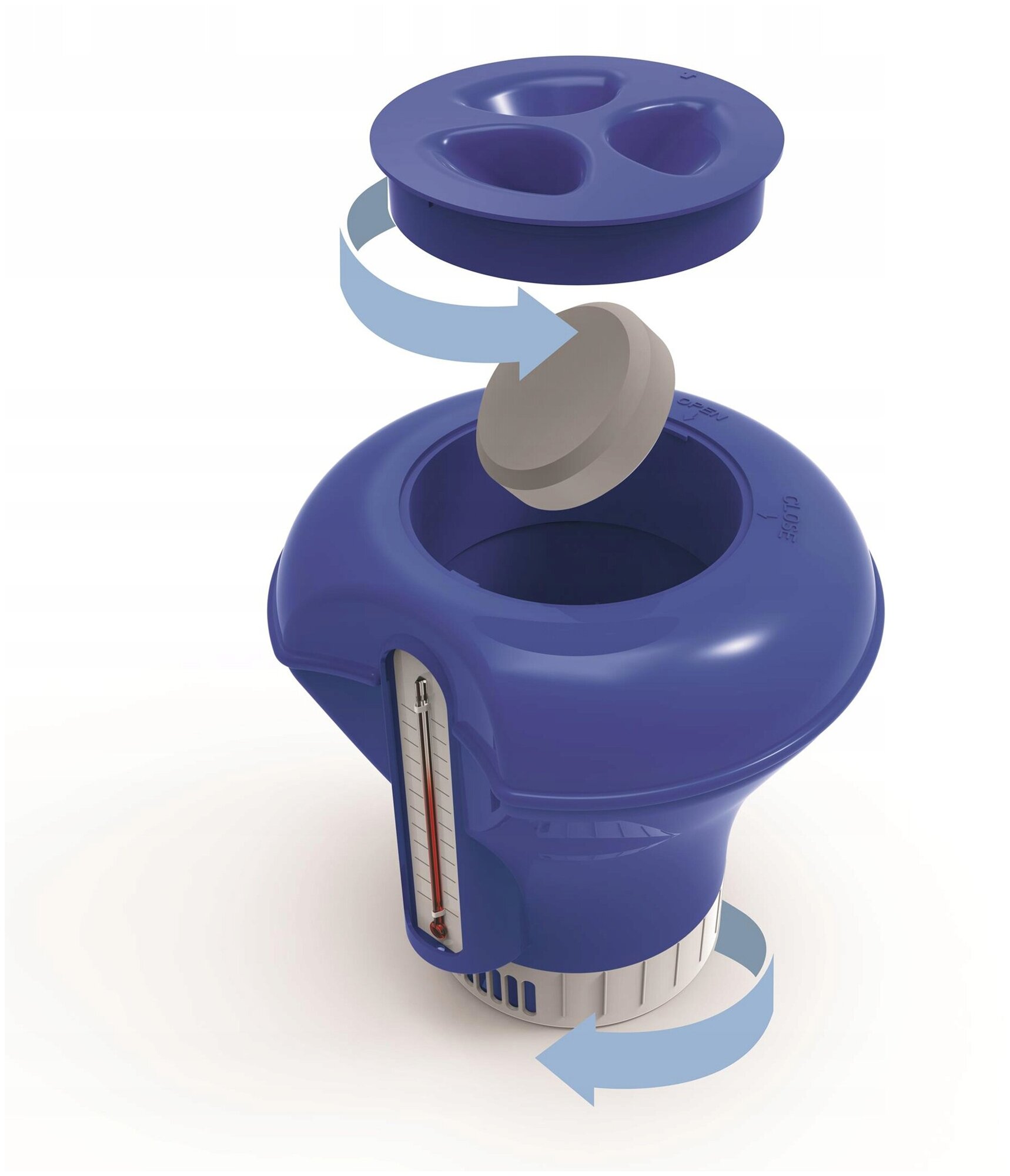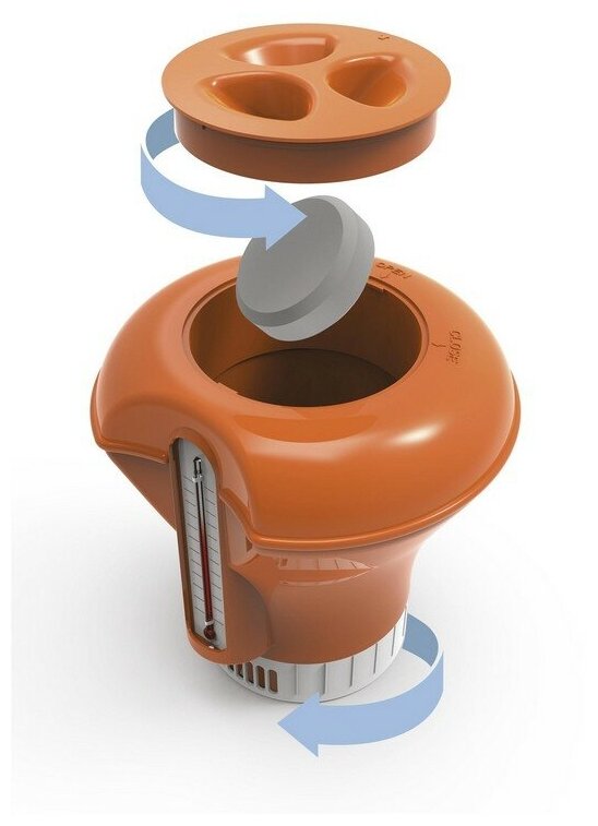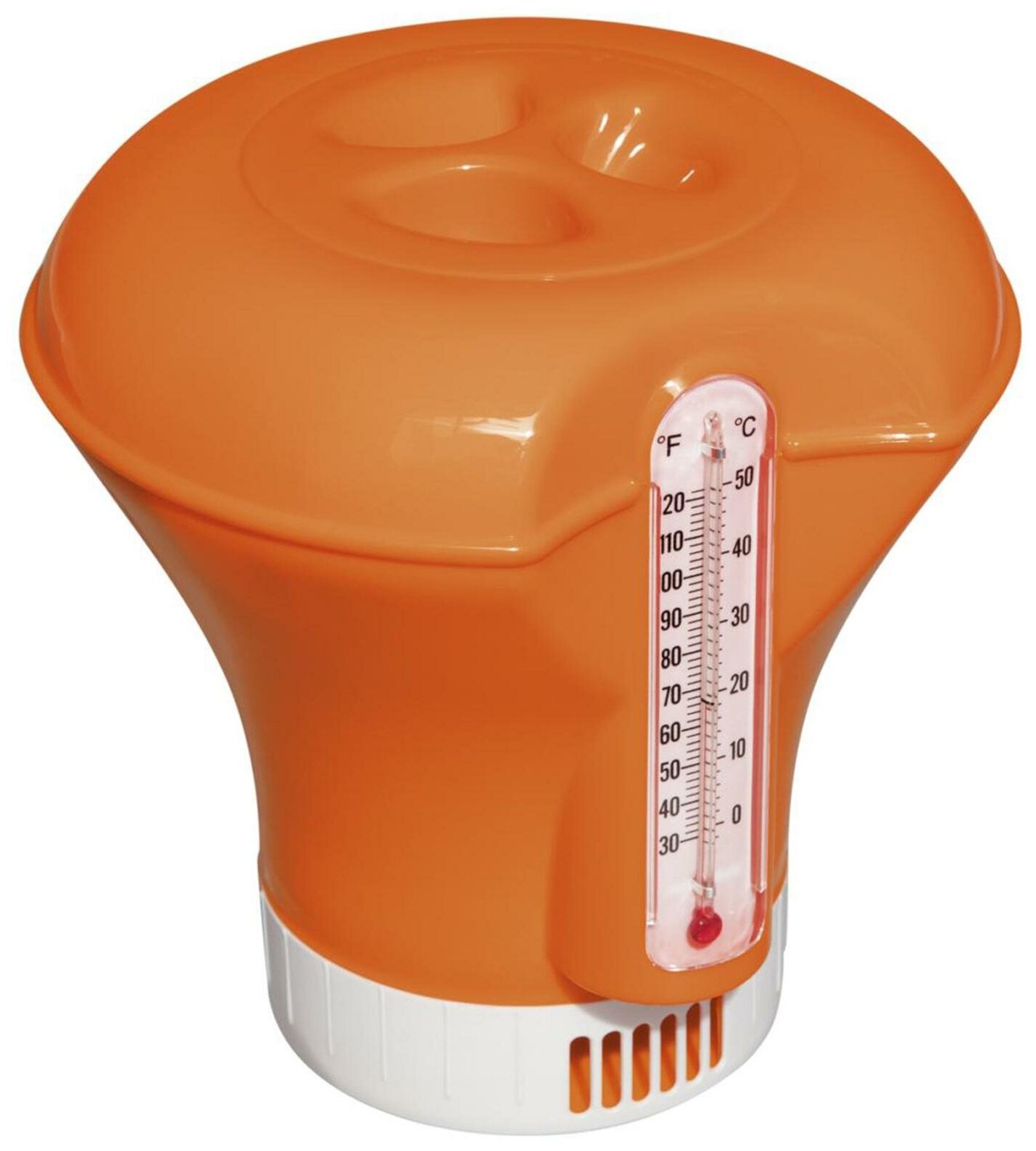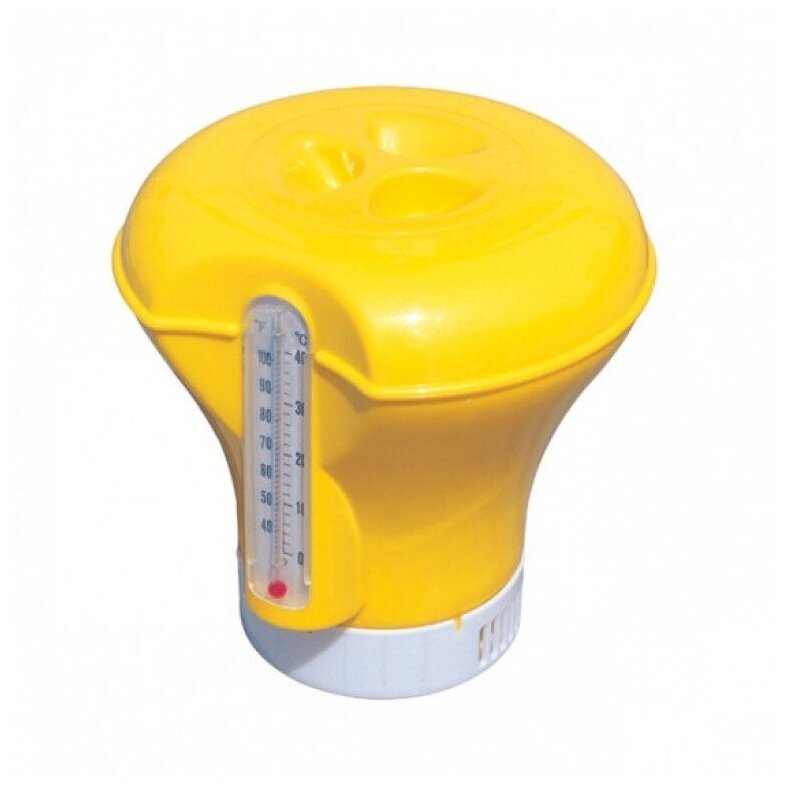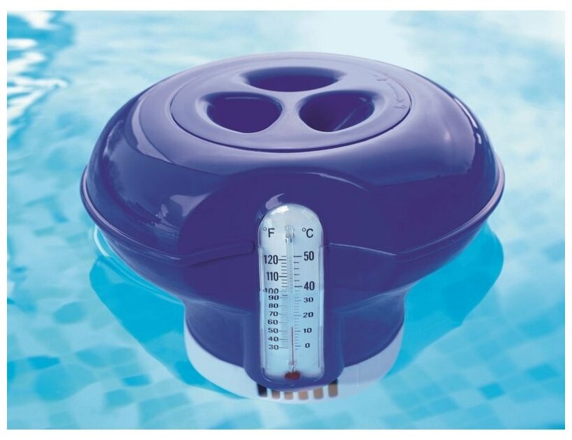 Поплавок-дозатор с термометром Bestway предназначен для регулируемого растворения твердых очистных химреагентов для воды. Сняв верхнюю крышку, Вы можете поместить в камеру реагенты в форме таблеток или порошка. Регулируя пропускное отверстие в основании поплавка, можно установить рациональный режим использования. Благодаря встроенному термометру, вы всегда будете знать, насколько прогрелась вода.