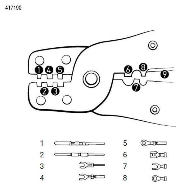 Предназначены для обжима:1. Коннекторов D-sub 26–28 AWG2. Коннекторов со стыковой изоляцией 22–26 AWG3. Телефоных коннекторов 22–26 AWG4. Неизолированных клемм и штекеров 20–22 AWG5. Неизолированных клемм и штекеров 14–18 AWG6. Неизолированных клемм и штекеров 10–14 AWG7. Неизолированных клемм и штекеров 16–18 AWG8. Неизолированных клемм и штекеров 20–22 AWG9. Снабжены кусачкамиИнструмент не предназначен для работы под напряжением!Рабочий диапазон: 10 — 28 AWGДлина: 190 мм