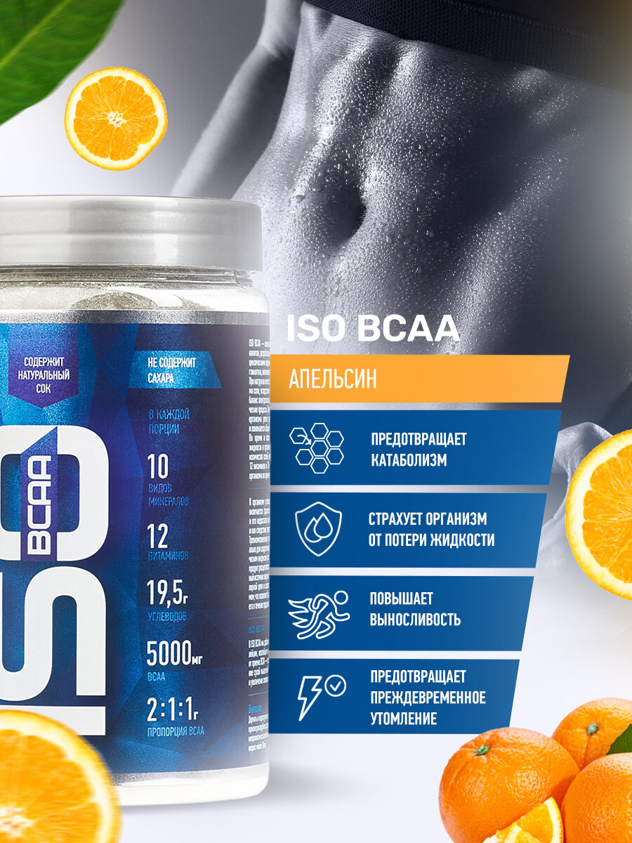 Изотонический напиток с добавлением BCAA. Восстанавливая водно-солевой баланс, поддерживает работоспособность организма. Сохраняет силовые показатели, выносливость, интенсивность и эмоциональный настрой на протяжении всей тренировки.