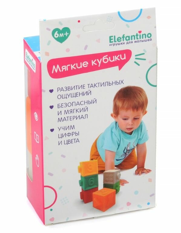 Мягкие кубики Elefantino с выпуклыми элементами - веселая игра для самых маленьких.