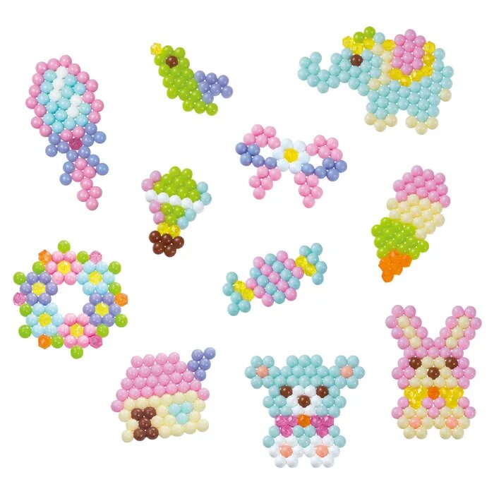 Очаровательные зверюшки из набора Aquabeads «Нежные игрушки» не могут дождаться, когда с ними начнут играть. Но чтобы их сделать, нужно приложить немного усилий. Чтобы сделать фигурку, нужно взять бусины, выложить их на форму по шаблону и распылить на них воду. После этого игрушку нужно оставить до полного высыхания.