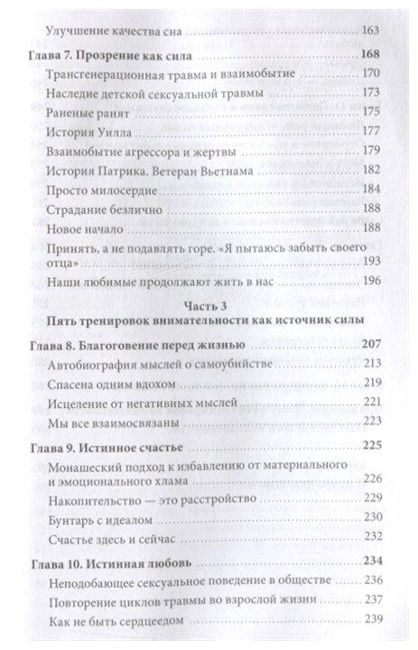 Книга помогает очень бережно и спокойно увидеть свои психологические травмы, а так же бережно и ненавязчиво поработать с ними. Книга помогает приводить ум и тело в состояние спокойствия, уравновешенности . Есть большое количество медитаций, дыхательных практик и т.п. всем кто ищет способы и варианты работы с собой для роста и развития рекомендую к прочтению .